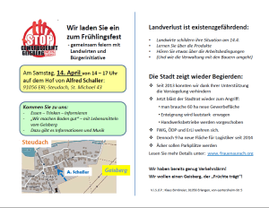 2. Die Stadt vermeidet den Ausdruck ENTEIGNUNG, aber über das „Umlegungsverfahren“ zwingt die Landwirte zum Verkauf ihrer Flächen. Damit ist deren Existenzsicherung infrage gestellt. Sehen Sie hier die Situation der Bauern und das Umlegungsverfahren im Prinzip: s. Landbesitzer und Umlegungsverfahren
